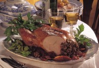 V Angliji je razvoj pečenega purana, kot glavne božične jedi trajal več stoletij. Sprva so v srednjeveški Angliji za božič jedli bodisi pave ali divje svinje, pri čemer je prednjačil merjasec. Po tem ko so francoski jezuiti v Veliko Britanijo »uvozili« purane pa je le-ta postal glavna jed, to je bilo nekje v letu 1700.