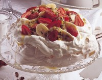 Ena pomembna izjema od britanske večerje je odsotnost gosi, saj jih v Novi Zelandiji ne gojijo, vlada pa je prepovedala uvoz tujih mesnih izdelkov. Sladice so skoraj brez izjeme metina pita, božični (slivov) puding, kot dodatek pa maslo narejeno iz sadnega žganja. Uživanje živil, ki niso tradicionalno britanske za božič, kot npr. kolač iz Nemčije, Buche de Noël iz Francije, panettone iz Italije je bilo do leta 1990 na Novi Zelandiji praktično nezaslišano in še danes je to bolj izjema kot pravilo. Ker v Novi Zelandiji praznujejo božič v poletnih mesecih pa so pogoste tudi jedi pripravljene na žaru, ter sezonsko sadje kot so češnje in jagode. Na gornji sliki je torta Pavlova - tipična sladica iz Nove Zelandije in Avstralije, ki temelji na pudingu in jo pogosto postrežejo ob božiču (in skozi vse leto).