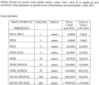- Sklep o sprejemu Elaborata o oblikovanju cene storitev javne službe oskrba s pitno vodo v Občini Puconci (pripravljen na podlagi Uredbe o metodologiji za oblikovanje cen storitev obveznih občinskih gospodarskih služb varstva okolja).