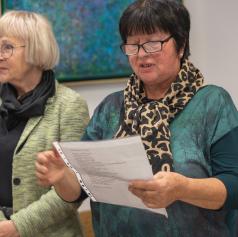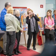 Na odprtju sta zbrane sta nagovorili predsednica Društva upokojencev Vlasta Veren in vodja likovne sekcije pri Društvu upokojencev Murska Sobota Darinka Horvat.