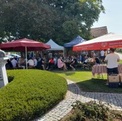 Ustavili so se v vaški gostilni ali na si na stojnicah kupili kaj za spomin. Tudi za župnijo Dokležovje je bilo letošnje proščenje prav posebno duhovno in versko ter družabno preživeto. Po proščenjski maši so domačini pripravili za vse zbrane druženje v parku ob doprsnem kipu rojaka dokležovskega dušnega pastirja Ivana Jeriča. Za vesel del druženja, so za zabavni del poskrbeli domači dokležovski glasbeniki iz družine Kuzma, ki so zaigrali narodne in zabavne melodije.