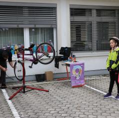 Učenci so se udeležili popravljalnice koles, kjer so imeli priložnost, da svoja kolesa pripeljejo v brezplačno servisiranje. Ob tem so z velikim veseljem risali s kredo po zaprtem parkirišču, pri čemer so se osredotočili na temo mobilnosti.