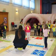 Posebno pozornost je pritegnil obisk policista, ki je učencem pokazal, kako pravilno in varno priti v šolo s kolesom ali peš, kar je pomembno za njihovo varnost v prometu.