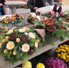 Med obiskovalci so priljubljeni suhi aranžmaji, na voljo pa je tudi rezano cvetje in cvetje v lončkih. Kot nam je zaupala ena od prodajalk se cene aranžmajev gibljejo med 20 in 50 evrov.