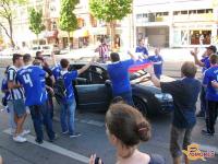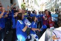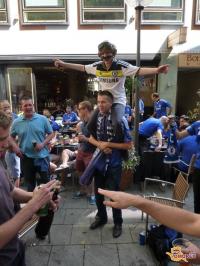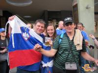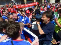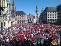 Tukaj na trgu nas je posnela tudi ekipa 24ur in pa snemalec, ki je snemal za Adidas. Tako kot marca, ko nas je Londonu posnela ekipa Chelsea TV, smo tudi v bavarski prestolnici vzbudili veliko zanimanja. Celo angleški navijači so nas vzeli za svoje, s katerimi smo skupaj dolgo prepevali. S seboj smo seveda imeli tudi slovensko zastavo in pa svoj ogromen transparent: »SLOVENIAN BLUES«. Nekatere bavarske skupine so celo tekmovale z nami kdo je glasnejši, ampak vse smo utišali z našo navijaško: »MALO VAS JE, MALO VAS JE PI…..«!