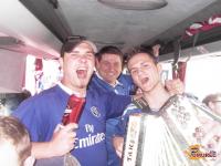 Pot se je začela zjutraj že ob 05:00, ko so na avtobus vstopili prvi navijači v Domžalah, nato pa se je pot nadaljevala od Ljubljane do avstrijske meje in seveda vse do Bavarske. Med 46 potniki v München je bilo tudi 6 »modrih« pripadnic nežnejšega spola in pa tudi 2 navijača Bayerna, ki sta pač morala cel dan poslušat šale na račun njunega kluba. Za celodnevno veselje je skrbela tudi frajtonarca, ki je prvič zaigrala že ob sedmih zjutraj. Zraven naših domačih skladb so se prepevale in igrale tudi navijaške, kot so: Blue is the colour, Que Serra Serra, »Who the fuck is Bayern München« , in druge… Ne smem pozabit tudi na našega veseljaka Gregorja Horvatiča - »Boya«, ki je neprestano skrbel za odlično vzdušje med nami navijači!