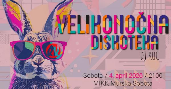 Sobota, 4.4.2026MIKK Murska Sobota21.00Vstopnina 5€Vstopnice so v prodaji od 19.3.naprej, število le teh pa je omejeno.…………………..Na MIKKovi velikonočni diskoteki se bo vrtelo, plesalo in norelo na hite iz različnih glasbenih obdobij in žanrov, za vse to pa bo poskrbel DJ KUC.Se...