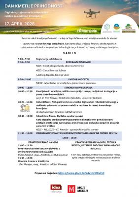 Kako bo videti kmetija prihodnosti – in kaj od tega lahko na svoji kmetiji uporabite že danes? Vabimo vas na Dan kmetije prihodnosti, kjer bomo skozi srečanje kmetov, strokovnjakov in raziskovalcev odkrivali nove pristope, tehnologije ter priložnosti za razvoj sodobnega kmetijstva. PROGRAM:...