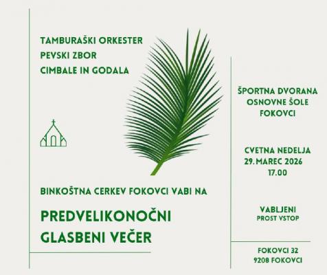 Vabljeni na glasbeni večer tamburaškega orkestra v Fokovce. Prireditev bo v nedeljo 29.03.26 v športni dvorani OŠ Fokovci ob 17. uri.