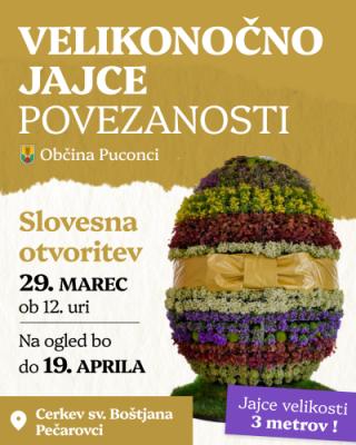 Zaradi slabega vremena smo primorani svečano otvoritev velikonočnega jajca prestaviti na drugi termin, zato vas vabimo da se nam pridružite 2. 4. 2026 ob 15 30 uri. CVETOČE VELIKONOČNO JAJCE POVEZANOSTI - pri cerkvi Svetega Boštjana Pečarovci Slovesna razgrnitev cvetličnega jajca v nede...