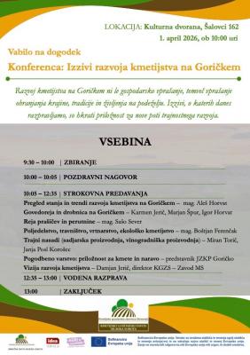 🌱 Vabljeni na konferenco: Izzivi razvoja kmetijstva na Goričkem 🌾 Pridružite se nam 1. aprila 2026 ob 10. uri v Kulturni dvorani v Šalovcih, kjer bomo skupaj odpirali ključna vprašanja prihodnosti kmetijstva na Goričkem. 👉 Kako se razvija kmetijstvo v regiji?👉 Kje so priložno...
