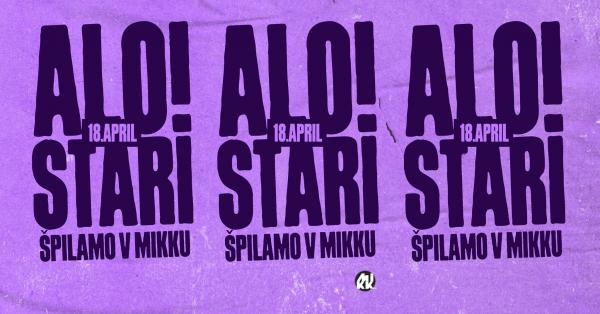 ALO!STARI spet na drugi strani Mure!Veš kak ful smo si želeli špilat v Mikku? Pune.Končno nam bo ratalo.Kdo smo ALO!STARI:Ah devetdeseta. Zlati cajti. Pubeci smo se dobivali na dvoriščih al pa pri Ušc-ju. V Mariboru valda. Takrat smo rekli, da gremo na PA (aka. Pedagoška akademija). Vsak ...