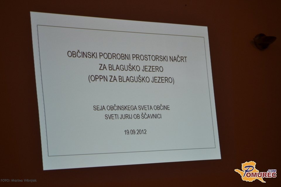 Obravnavali so tudi odlok o občinskem podrobnem prostorskem načrtu za Blaguško jezero, ki ga je izdelalo in predstavilo izbrano podjetje IPG Inženiring oziroma direktor Igor Pivec. Obravnavano območje je doslej prostorsko urejal odlok o ureditvenem načrtu za Blaguško jezero iz leta 1987 (s popravki iz l. 2001). Lastnik zemljišč okoli jezera je zaradi načrtovanih posegov naletel na ovire, zaradi česar je podal pobudo za spremembo obstoječega ureditvenega načrta ali sprejetje novega prostorskega načrta. Ker so na občini v fazi priprave novega občinskega prostorskega načrta, so se odločili za sprejetje občinskega podrobnega prostorskega načrta za Blaguško jezero v skladu z zakonom o prostorskem načrtovanju. Igor Pivec je podrobno predstavil območja razdelitvenega načrta (dovoza in parkinga, igral in piknikov, campinga, nasipa, individualnih in počitniških objektov, območje prostih dejavnosti, mirno območje...), situacijo prometne ureditve, komunalnih naprav, varstva pred naravnimi in drugimi nesrečami.