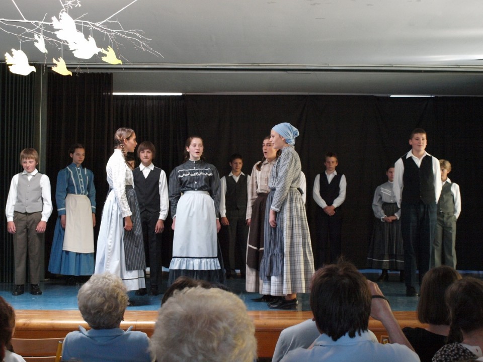 Imajo folklorna oblačila, za katere je bila uporabljena osnova za izdelavo skupinska fotografija učencev Osnovne šole Križevci v Prekmurju iz leta 1920. Pri oblikovanju oblačilnega videza je sodelovala Jelka Pšajd, etnologinja iz Pomurskega muzeja, ki je priskrbela tudi arhivsko fotografijo, in Nežka Lubej, ki je bdela nad sámo izvedbo na osnovi arhivskega gradiva.