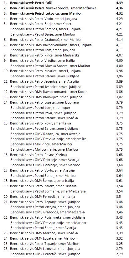 Rezultati ocenjenih javnih stranišč po občinah: