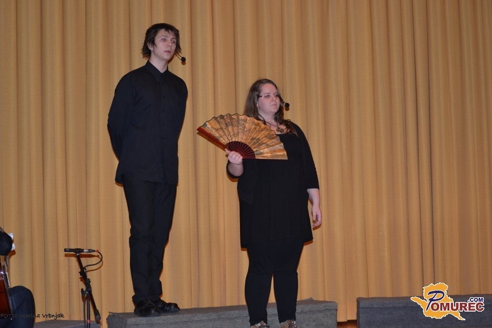 Točno ob 19. uri so zazveneli zvoki trobente Zdeneka Billyja ter vse prisotne na odru presenetili kurenti iz Drežencev pri Ptuju. Nastopil je Mešani pevski zbor Glasbene šole Gornja Radgona, pod vodstvom prof. Andreja Tibauta in dijaki Gimnazije Franca Miklošiča Ljutomer z mentorico Katjo Peršak, ki so pripravili recital z naslovom "Sodobni izzivi povodnega moža". V njem sta se prepletata klasika (Povodni mož, France Prešeren) in sodobna lirika ( Urška, Andrej Rozman Roza). Dijaki so skozi igro, recital in glasbo želeli sporočiti, da je tudi v sodobnosti moč najti "Urške". Nastopili so Martina Škrlec, Tilen Kocbek, Urša Jelen, Mario Potočnik, Urška Lukovnjak in Polonca Zamuda. Glasbeno podlago so pripravili sami, pod mentorstvom prof. Barbare Špilak. Povezovalka kulturnega programa je bila Norma Bale.