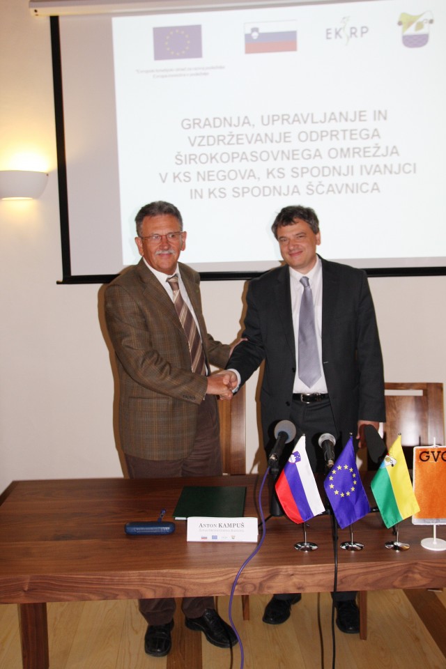 Včeraj, 29. marca 2013, je bil v Domu penine podjetja Radgonskih goric d.d. v Gornji Radgoni, izveden svečan podpis Gradbene pogodbe za gradnjo Odprtega širokopasovnega omrežja v KS Negova, KS Spodnja Ščavnica in KS Spodnji Ivanjci.