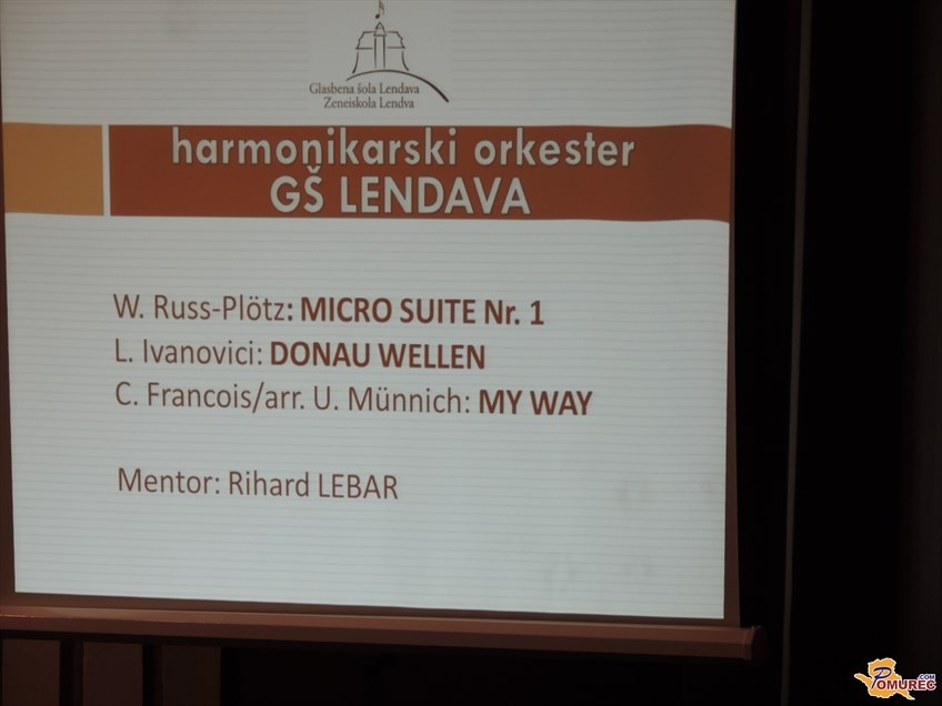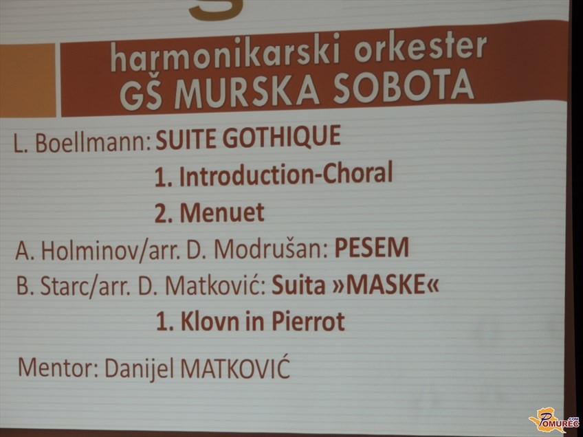 Prisluhnili smo lahko orkestrom glasbenih šol Gornja Radgona, Lendava, Murska Sobota, Ormož (namesto orkestra je nastopil kvartet diatoničnih harmonik) in Ljutomer. Zbrane sta nagovorila Stanislav Lašič, ravnatelj Glasbene šole Slavka Osterca Ljutomer in mag. Olga Karba, županja Občine Ljutomer, ob koncu prireditve pa sta mentorjem orkestrov podelila priznanja. Program je povezovala Damaris Kolarič.