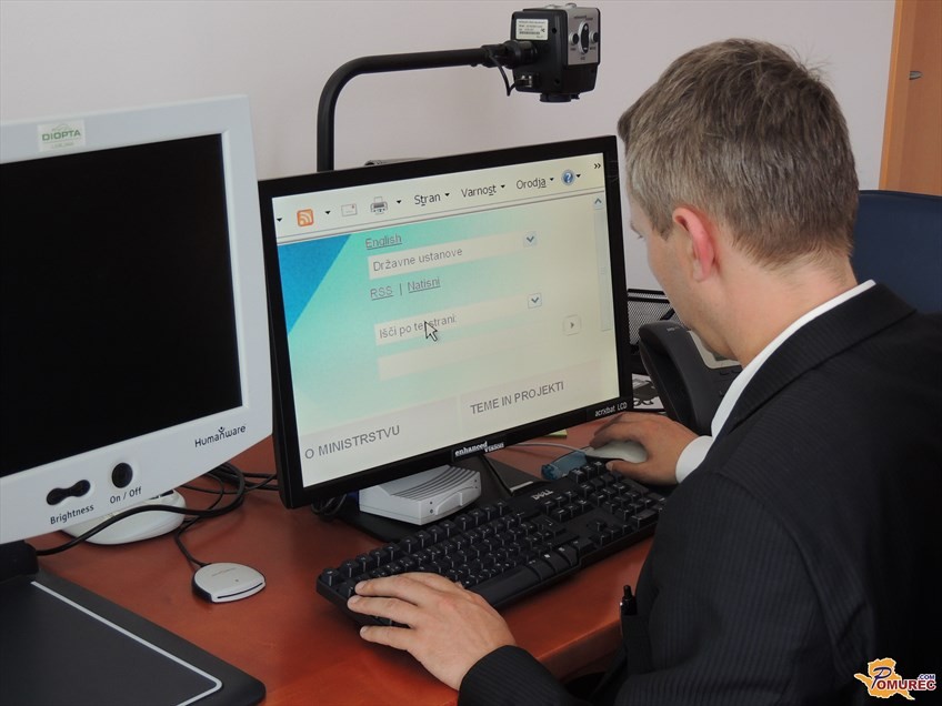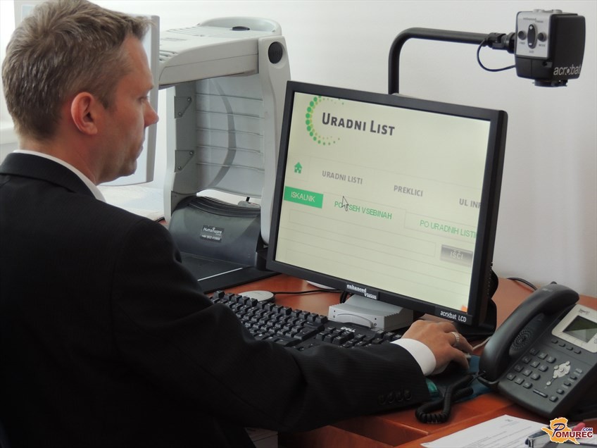 Branko Petovar si pri svojem delu pomaga s posebnimi napravami, programi, ki mu olajšajo branje in pisanje.