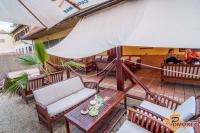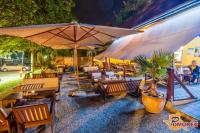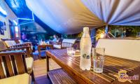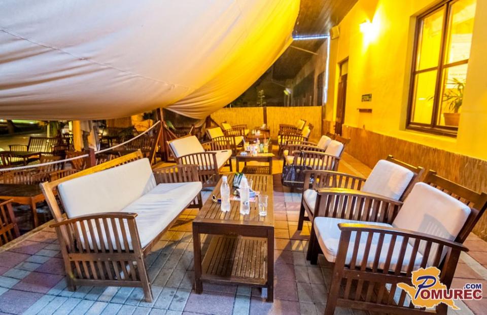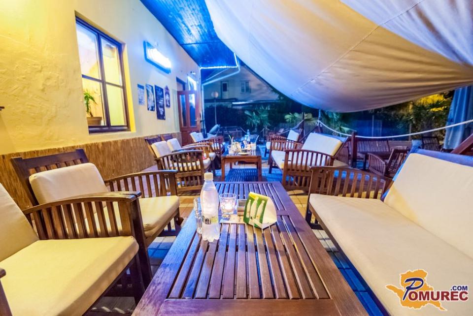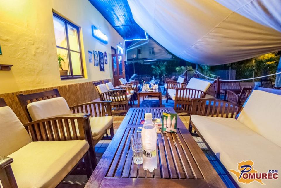 Celoten naš lokal je v obliki ladje, naša terasa je pokrita z belim jadrom, ki daje prijetno senco v vročih poletnih dneh. Terasa je posuta s kamenčki in obkrožena s palmami, tako da našim gostom želimo približati morsko vzdušje, zato v ta namen poleti večkrat priredimo zabave z bazenom, v katerem se lahko naši gostje osvežijo, če je vročina prevelika. Zvečer prižgemo tudi bakle, da je vzdušje še bolj ta pravo.
