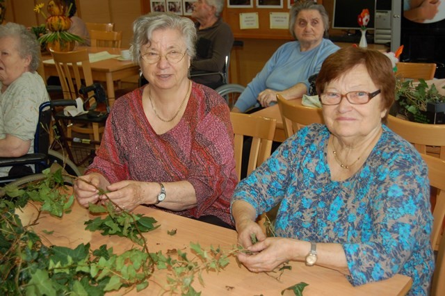 Oskrbovanci so s pomočjo prostovoljk Kalamar Vere, Kerec Katice, Čuntala Katice, Horvat Vere in Gašpari Melani izdelali različne dekoracije, ki krasijo vhod Doma starejših.