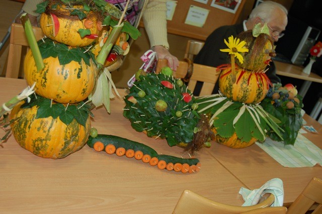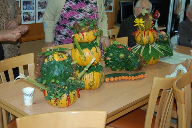 V torek, 10.09. 2013 so se zbrali oskrbovanci Doma starejših Rakičan in članice prostovoljnega društva upokojencev Murska Sobota, da bi ustvarili jesenski pridih. Tako so iz kmetijskih pridelkov predvsem iz buč, koruze, krompirja, korenčka, kumaric in podobno izdelovali različne dekoracije.
