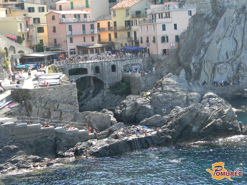 Prva vasica je dejansko Riomaggiore, kjer se lahko podate na slikovito »pot ljubezni«, ki povezuje ta kraj s sosednjo vasico Manarolo. Pot je dolga 900 metrov in je bila skopana v skalo s strani prebivalcev obeh vasi že v 20 letih prejšnjega stoletja. Manarola je znana tudi kot največja pridelovalka vina med deželami.