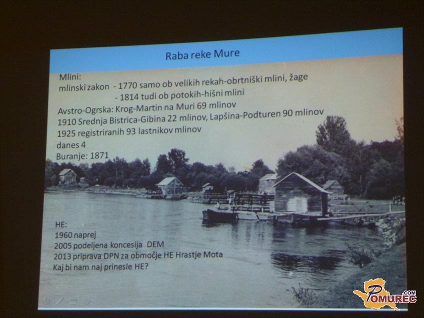 Na koncu je Tine Mlinarič predstavil, kako izrabiti energijo reke Mure. Meni, da so odlična lokalna energijska zgodba mlini, ki so bili na Muri tudi v preteklosti, le da bi bilo potrebno izdelati študije za boljši izkoristek energije. To bi bila izvirna ekonomska dejavnost in na tem bi lahko slonelo tudi kmetijstvo in turizem.