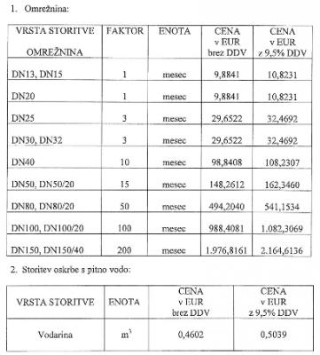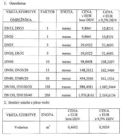 - Sklep o določitvi cen storitev oskrbe s pitno vodo v Občini Puconci. Cena storitev oskrbe s pitno vodo zajema: