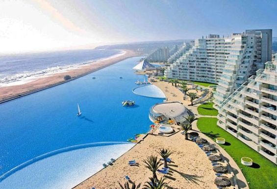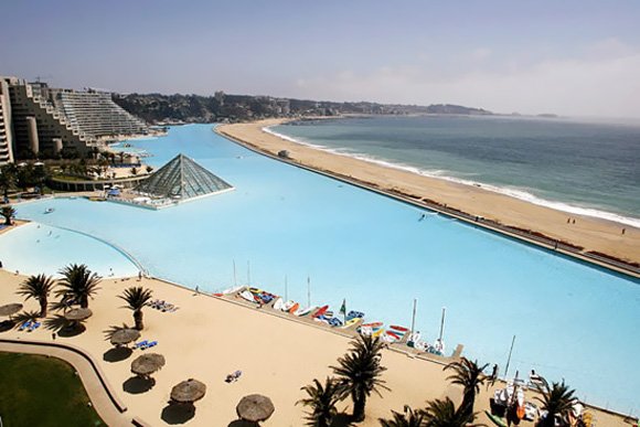 Na jugu Čila, v mestu Algarrobo, države, ki kot zadnja meji na prostrano Antarktiko, se nahaja največji bazen na svetu.