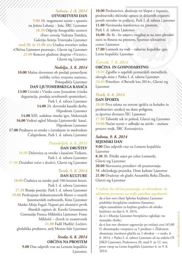 - prost vstop na Letno kopališče Ljutomer 6. in 9. avgusta 2014.