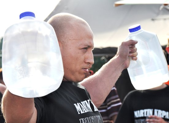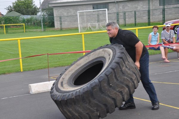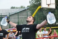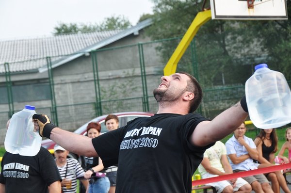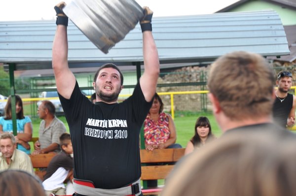 Tekmovalci so se sicer pomerili v 6 disciplinah: slalom z utežmi (2 x 48 kg), prevračanje kolesa (240 kg), držanje vrčev z iztegnjenimi rokami (2 x 4 kg), dvigovanje uteži (100 kg), dvigovanje soda nad glavo ter vlečenje vozila.