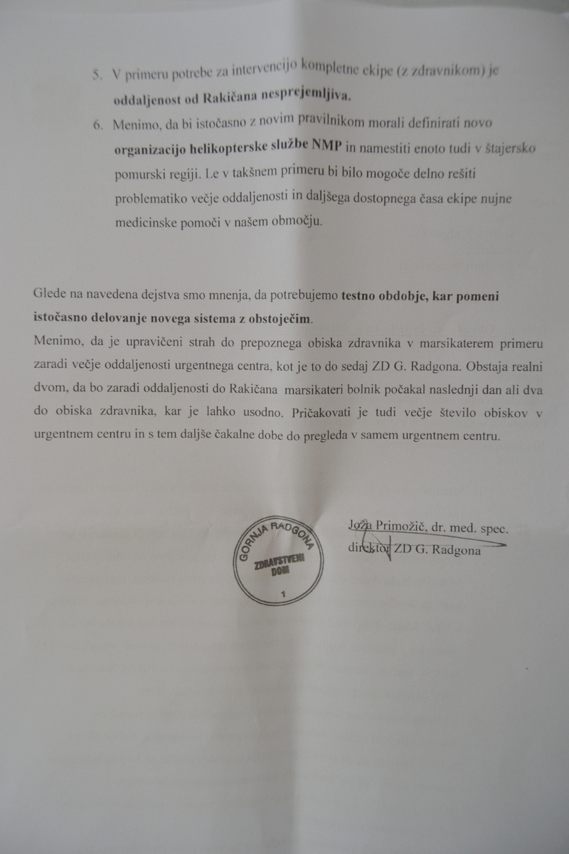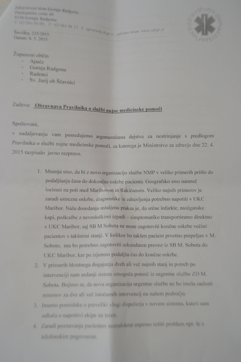 Dopis (spodaj v priponki), ki ga je podpisal direktor ZD Gornja Radgona Joža Primožič, je sestavni del sprejetega sklepa, ki ga bodo štiri občine posredovale ministrstvu za zdravje in zahtevale, naj upoštevajo njihove argumente.