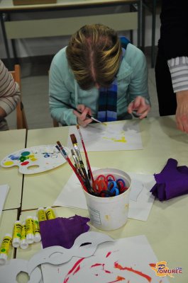 V Hiši Sadeži družbe je potekala pustna ustvarjalna delavnica, na kateri je Olga Koren predstavila, kako se ob pustu našemiti in skupaj z udeleženci izdelovala pustne maske.