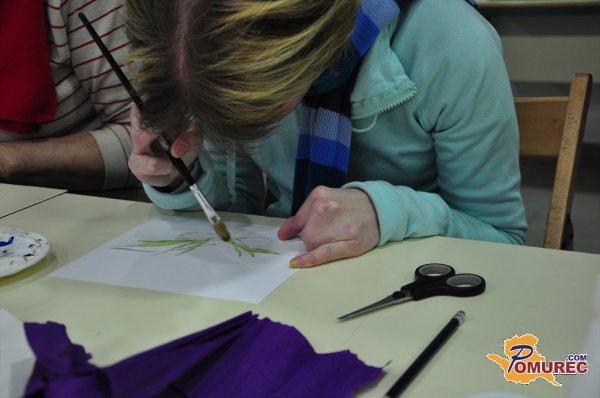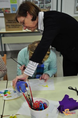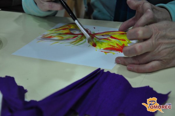 Olga Koren je skupaj z navzočimi ustvarjala pustne maske, pri tem pa jim svetovala, da naj so pustne maske pisane, živahne, vesele, polne barv. "Vsak naj ustvarja po lastni želji, vsak ima žilico, le pokazati jo mora," pravi Korenova.