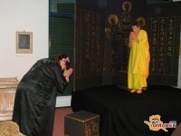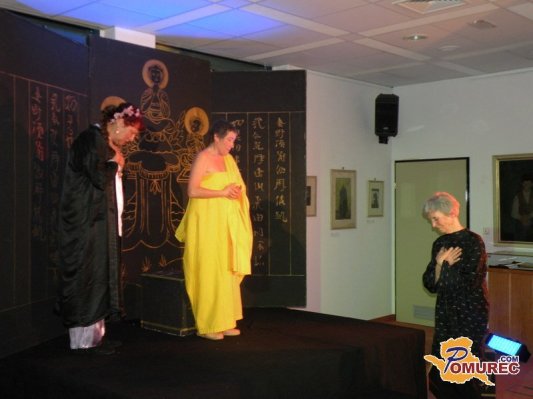 Zgodba omenjene drame se odvija v samostanu na tibetanski planoti, kjer dve ženski različnih starosti redovnici izpovesta svojo življenjsko zgodbo. Čeprav se dogajanaje tako geografsko kot zgodovinsko odvija daleč, so resnice o življenju, ki nam jih sama predstava sporoča, aktualne tudi v danešnjam svetu. Novelo Pod Košatim očesom je priredil in dramatiziral idejni vodja gledališča Peter Simoniti.