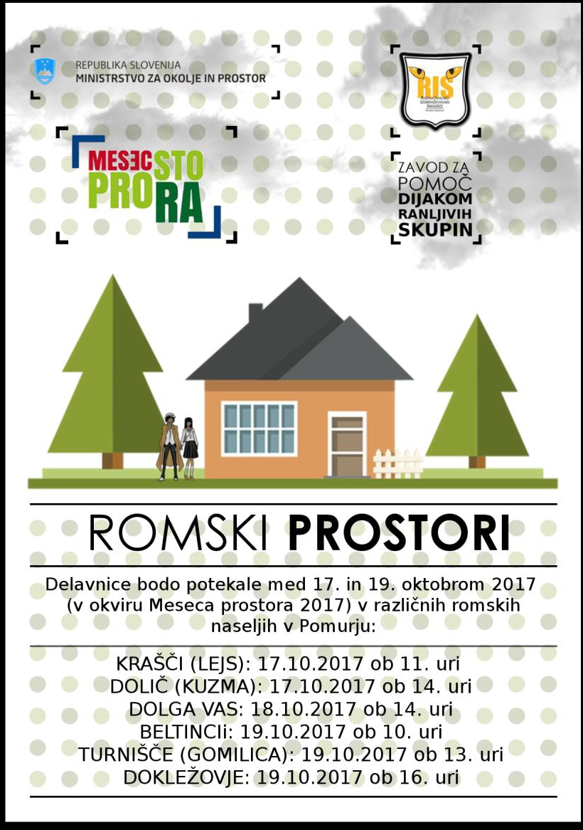 Delavnice bodo potekale med 17. in 19. oktobrom 2017 v različnih romskih naseljih v Pomurju: