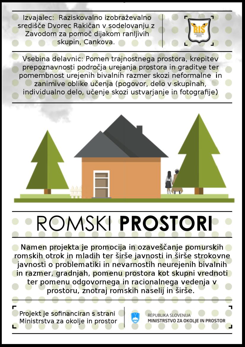 V okviru projekta Romski prostori bo RIS Dvorec Rakičan v sodelovanju z Zavodom za pomoč dijakom ranljivih skupin, Cankova v različnih romskih naseljih izvajal delavnice ozaveščanja.