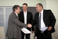 Jelko Gros, Igor Lukšič ter Blaž Miklavčič ob podpisu pogodbe (foto: siol.net).