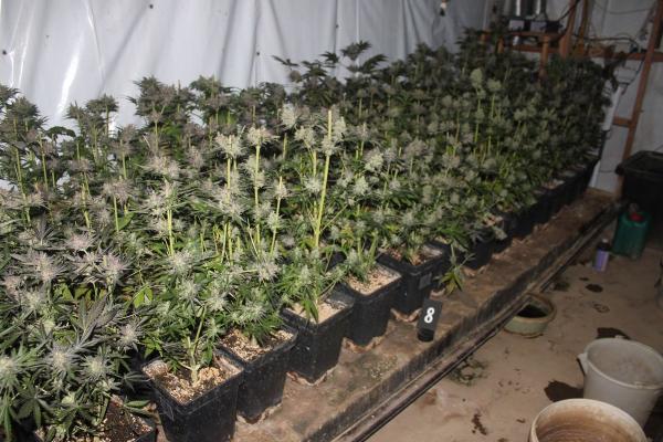 Med preiskavo so bile najdene štiri pvc vrečke s posušenimi rastlinskimi delci. V dveh posebej prirejenih prostorih je bilo najdenih 210 v lončkih rastočih sadik konoplje velikosti od 40 do 80 centimetrov, ki so se gojile pod UV svetlobo. Droga skupaj s priborom za gojenje je bila zasežena.