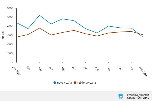 Po podatkih, ki jih je objavil Statistični urad Republike Slovenije, je poleg rasti prvič registriranih novih vozil, registriranih jih je bilo skoraj 127.000, opaziti tudi impresivno povečanje števila prvič registriranih rabljenih avtomobilov, ki se je v enem letu dvignilo za skoraj petino - prvič registriranih je bilo kar 87.000 rabljenih avtomobilov.