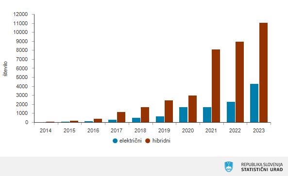 Med vsemi novimi osebnimi avtomobili, ki so bili registrirani v Sloveniji je bilo 23 odstotkov hibridnih, 9 odstotkov pa električnih avtomobilov.
