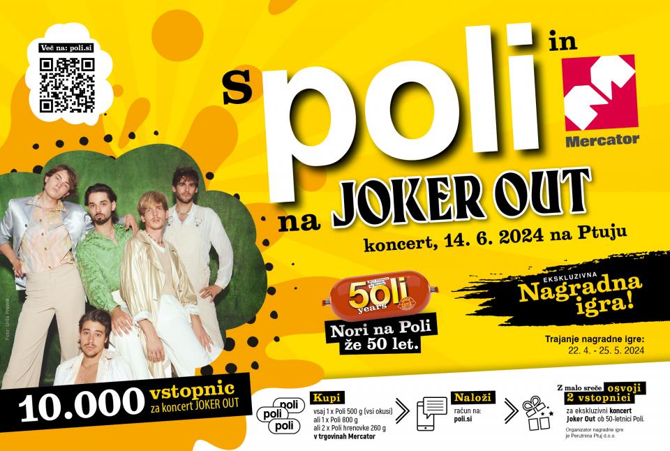 Zagotovite si vstopnice za ekskluzivno glasbeno doživetje s sodelovanjem v nagradni igri »S Poli in Mercatorjem na koncert Joker Out«, s katero lahko osvojite dve izmed 10.000 vstopnic za koncert JOKER OUT.