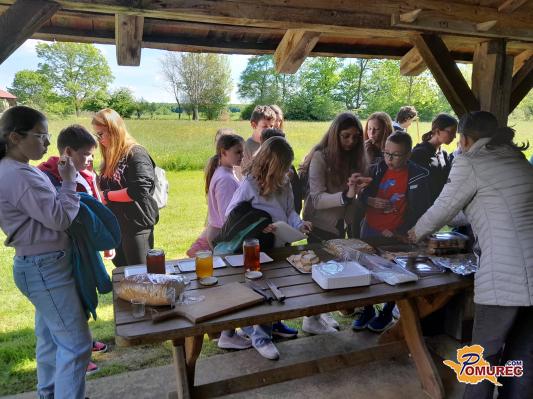 Jože Herbaj, član Čebelarskega društva Črenšovci pa je učencem predstavil delo društva, delo z čebelami, vzrejo matic, čebelarsko opremo in orodje. Učenci so po ogledu še poskusili več vrst medu in medene dobrote ter pogače z medom. Za učence je bila to ene vrste učilnica na prostem, kjer so med drugim spoznali pomen čebel in čebeljih produktov. Seznanili so s slovensko kulturo in slovensko avtohtono čebelo Kranjsko sivko.