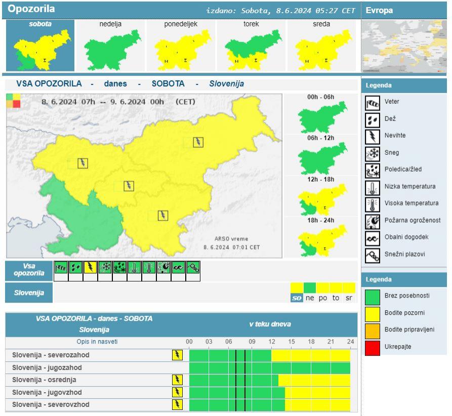Tudi danes opozorila pred nevihtami