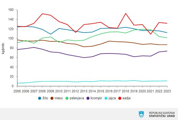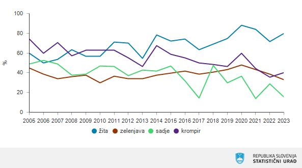 Pri rastlinskih pridelkih so lani zabeležili višje stopnje samooskrbe pri žitih in krompirju, medtem ko so pri zelenjavi in sadju beležili upad. V kategoriji živalskih proizvodov se je samooskrba zvišala le pri jajcih, medtem ko je pri mesu in medu upadla.