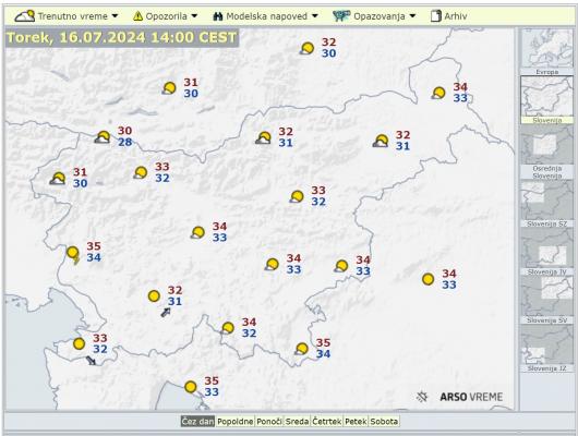 Toplotna obremenitev vztraja, temperature lahko narastejo do 37 stopinj Celzija