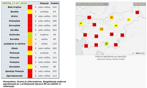 Pri nas visoke temperature vztrajajo že dober teden, v tem času pa je bilo zelo malo padavin. Po podatkih Agencije Republike Slovenije za okolje se z veliko požarno ogroženostjo srečujejo številni kraji po Sloveniji. Poleg Pomurja še Bela krajina, Brkini, Dolenjska, Gorenjska, Postojna, Spodje Posavje, Zgornjesavsko ter Obala.