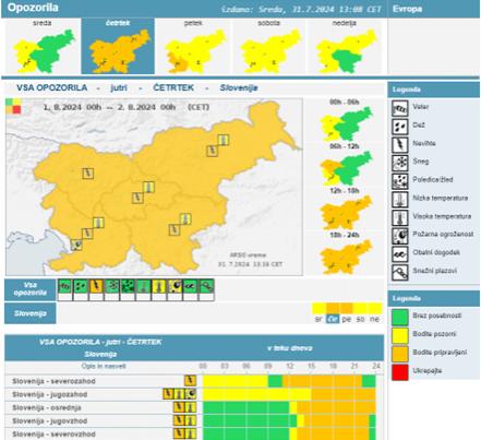Vremenoslovci za četrtek izdali oranžno opozorilo za vso državo