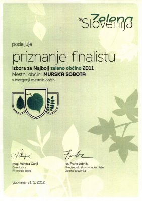 Za naslov Najbolj zelena občina je tekmovalo 28 občin, ki so med seboj tekmovale na področjih odpadkov, vode, energetike, komuniciranja in ozaveščanja, trajnostnega prometa ter ostalega, murskosoboška občina pa je v kategorijah Najbolj zelena Mestna občina ter Najbolj zelena Mestna občina na področju ravnanja z odpadki dosegla tretje mesto, takoj za Mestno občino Ljubljana in Mestno občino Velenje.